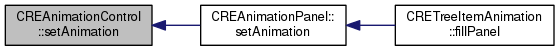Here is the caller graph for this function:| void CREAnimationControl::setAnimation | ( | const Animations * | animation | ) |