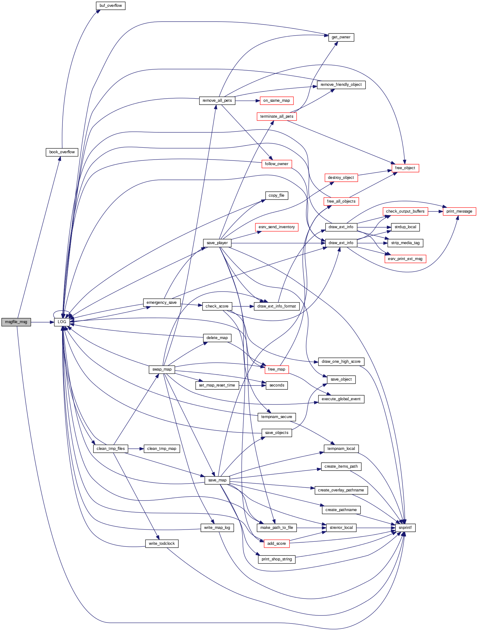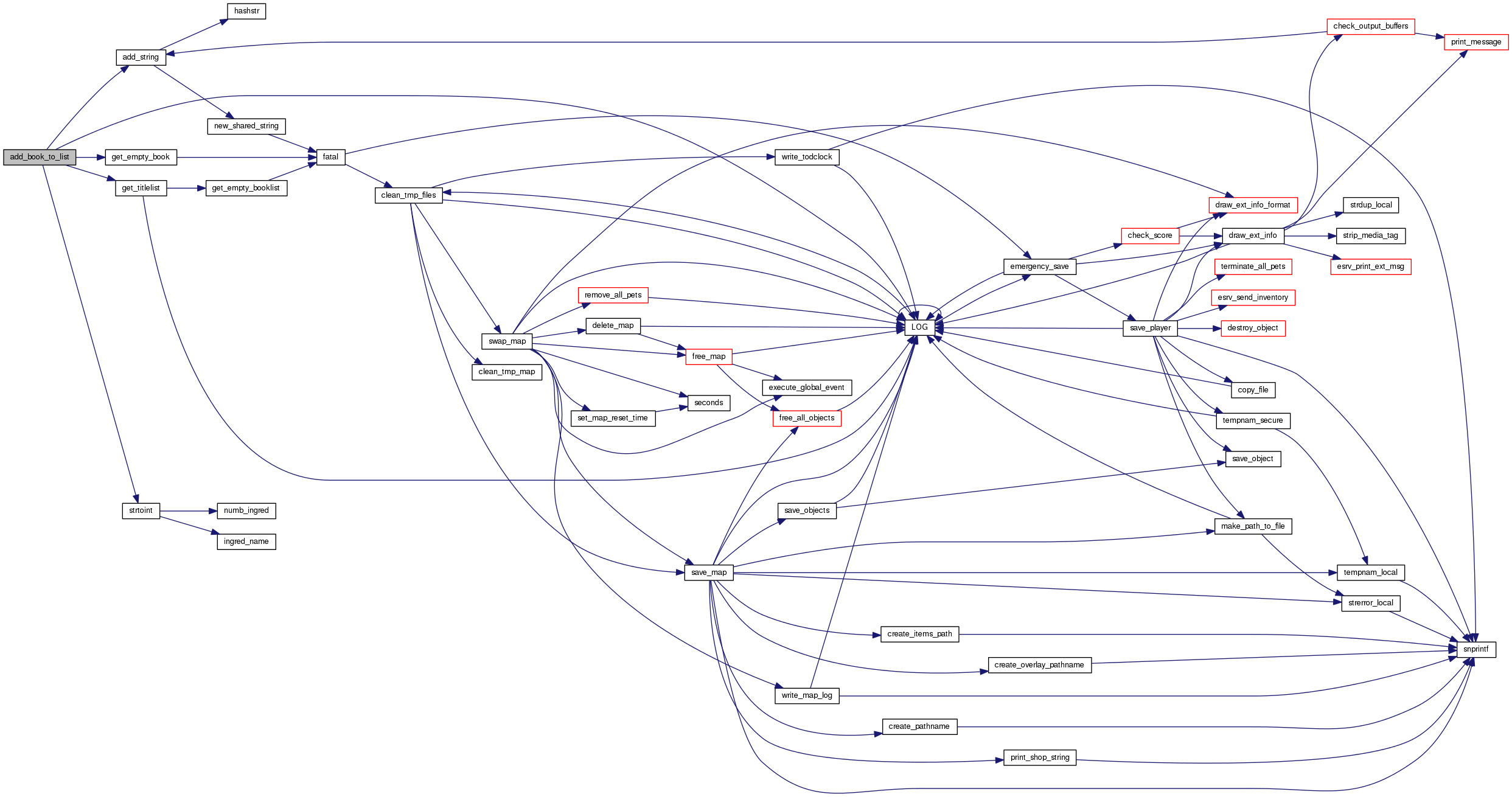 References BOOK_BUF, book_overflow(), first_msg, llevDebug, LOG(), linked_char::name, linked_char::next, nrofmsg, and snprintf().