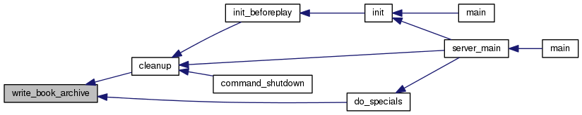 Here is the caller graph for this function:| void write_book_archive | ( | void | ) |