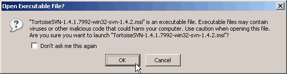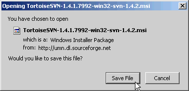After consulting the suggestion(s) listed on the Download page, select a (32-bit or 64-bit) of TortoiseSVN to download