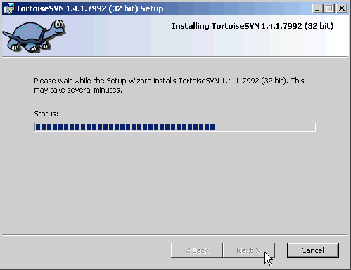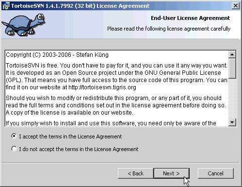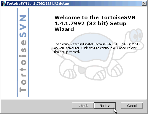Click on Next in the TortoiseSVN Setup window