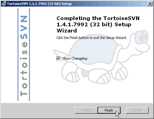 Click on Finish when TortoiseSVN is done installing