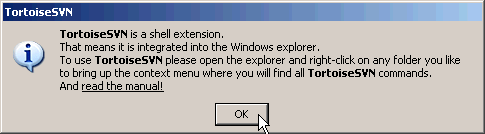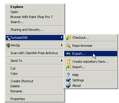 Launch TortoiseSVN by click on Start -> Programs -> TortoiseSVN -> TotoiseSVN