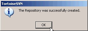 Another popup should appear showing that The Repository was successfully created, click on OK
